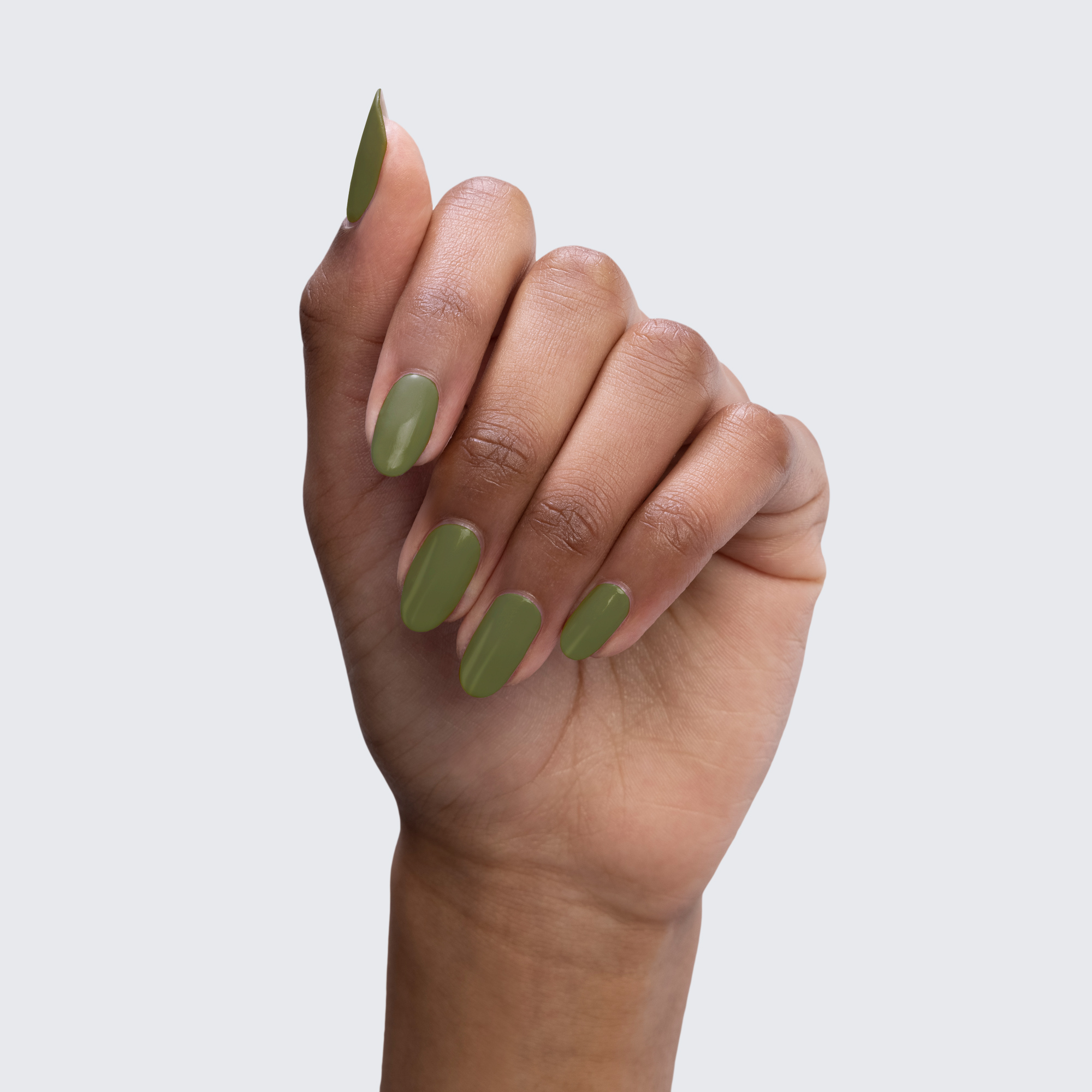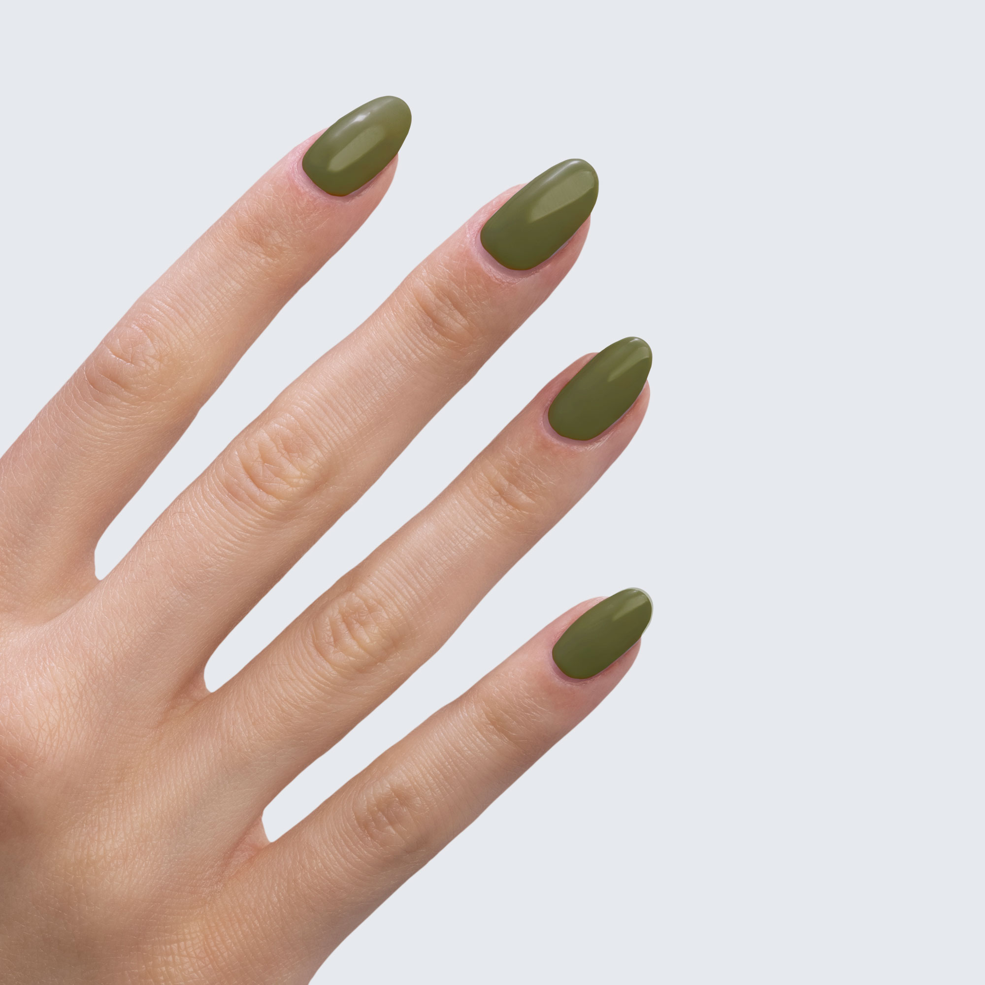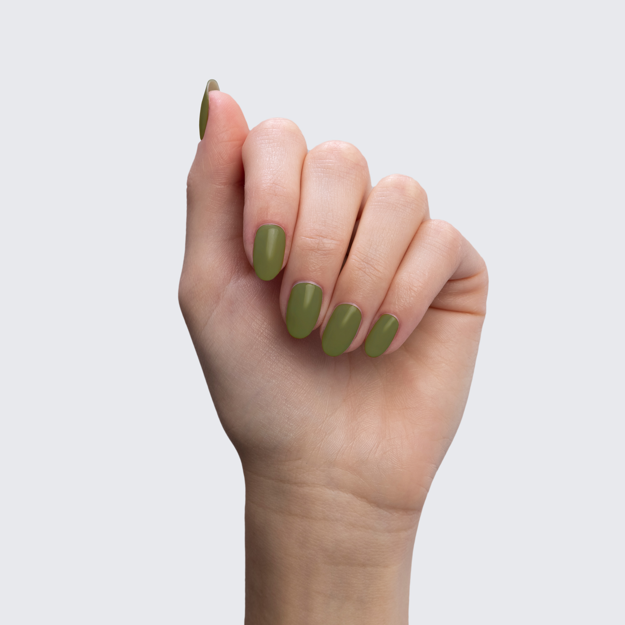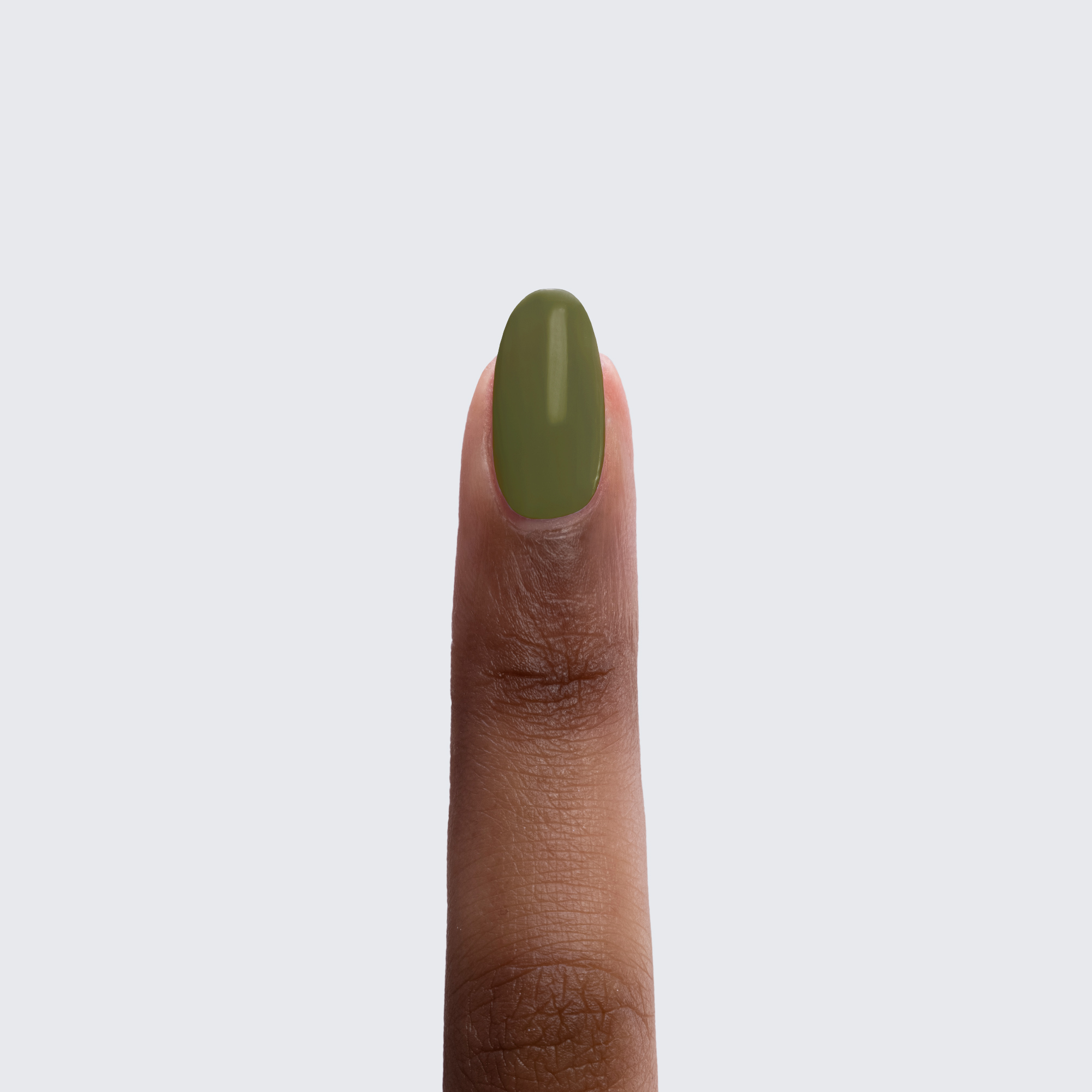 Olive green. Medium-dark. Opaque. Warm undertone.
